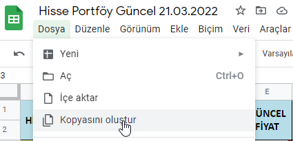 Not: SISE kodu GOOGLEFINANCE da çalışmıyor onun yerine IST:SISE şeklinde yazarsanız olacaktır.