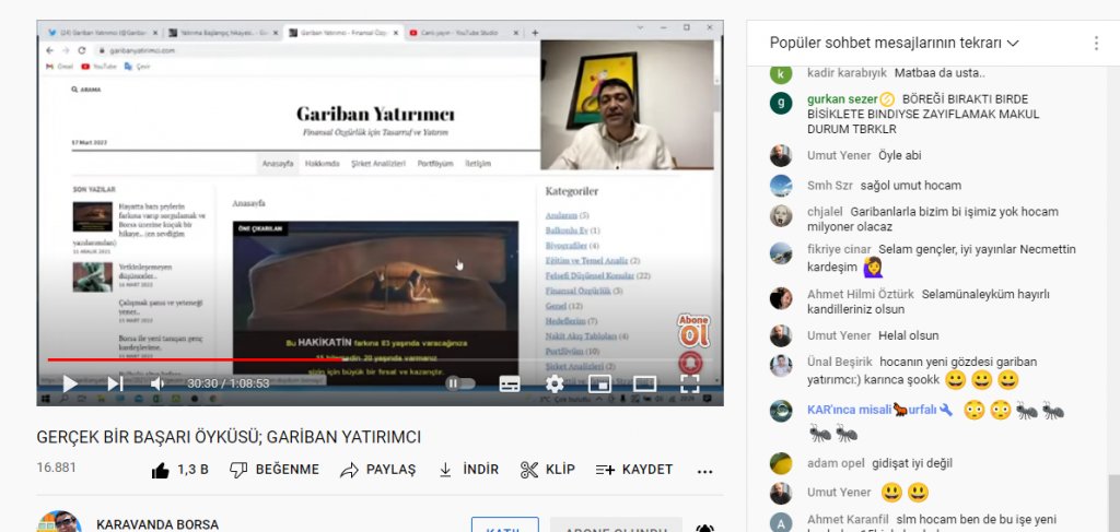 Daha sonra bir diğer gelişme ise @karavandaborsa Necmettin hocam namı diğer “Nejo” hocam bu ay ortasında beni Youtube kanalında tanıtmak istediğini söyledi bende çok memnun ve mutlu olacağımı söyledim çünkü 15 ay önce yatırım ve borsa ile tanışırken kendisinden videolarından etkilenerek bu yolculuğa çıkmıştım bu şekilde beni tanıtması ve desteklemesi benim için çok onur verici idi yaşadığım bütün süreç gözlerimin önünden geçti ..😊