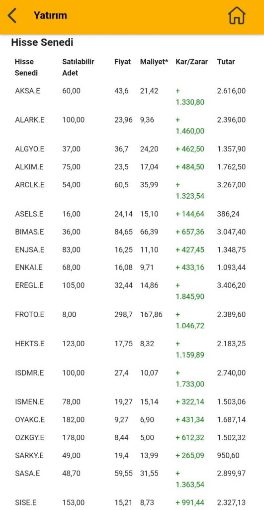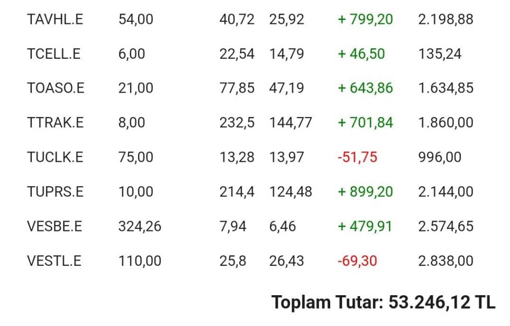 Sadece iki hissede zarardayım 5 hissem ise %100 ün üzerinde %100′ yakın olan da pek çok hissem var