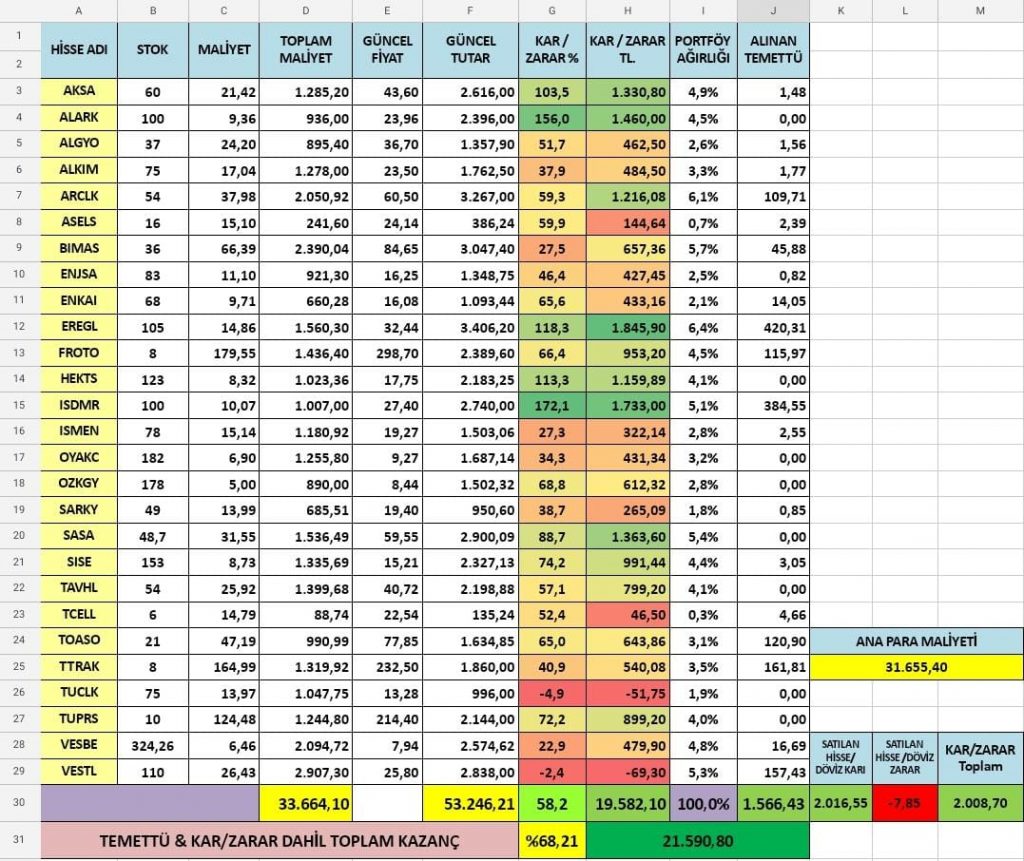 Tüm bunların dışında Toplam Portföyüm TL bazında %19,53, $ bazında ise %12,93 büyüdü