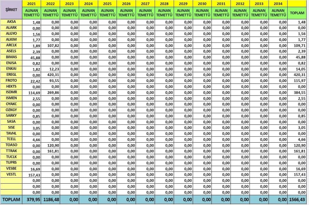 Alınan temettü grafiği bunu bu ay güncelledik bloğumuza yükledik dileyen herkes indirip kullanabilir linki buraya bırakıyorum tıklayınız