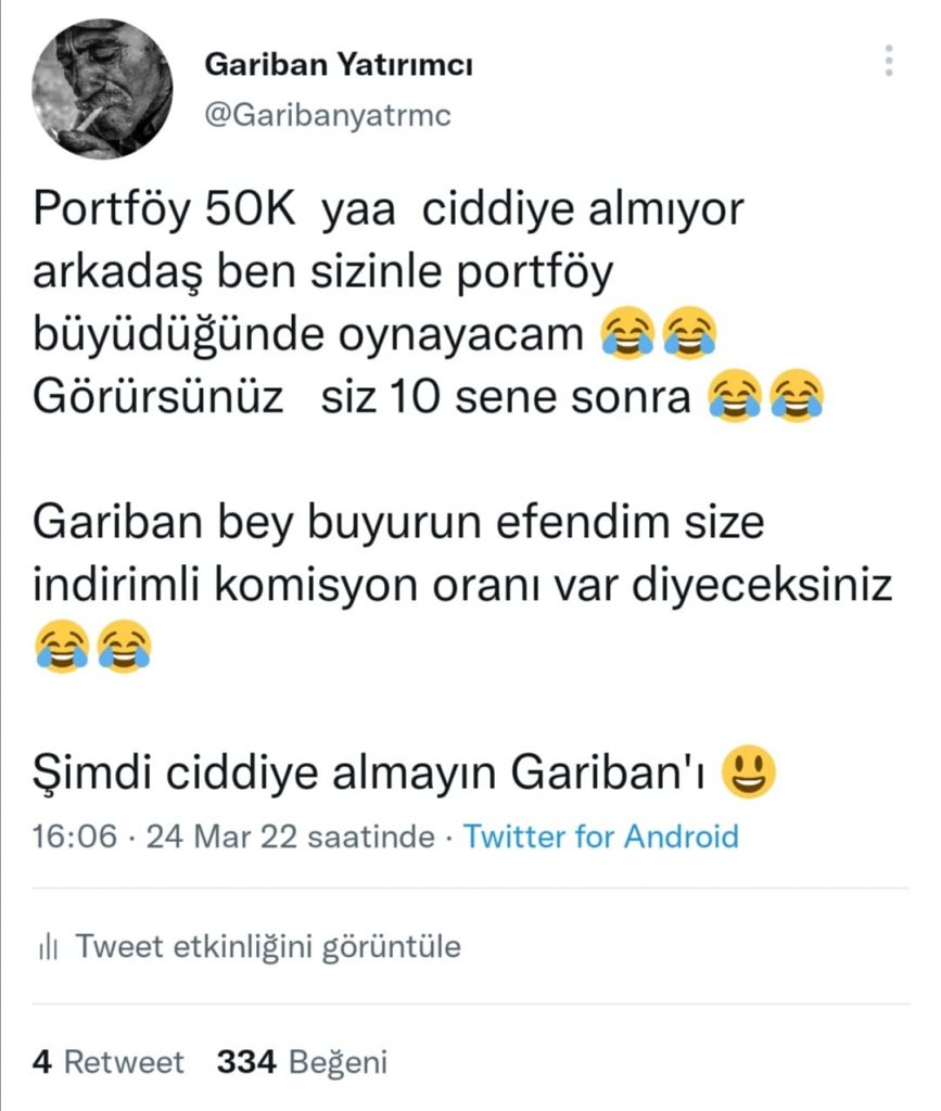 Bunların dışında bir de temettüler yatınca bankamın temettüden komisyon aldığını öğrendim aslında benim için önemli değildi ama Twitter’da arkadaşlar bankaya sorabilirsin dediler bende sordum bankamda ki arkadaşın kaba tavrı ve suratıma telefonu kapatması sonucu epey öfkelendim sonra da şöyle bir tweet attım hatıra kalsın 🙂