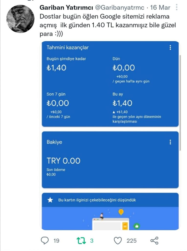 Reklam geliri pasif gelir oluşturmaya başladı çok sevinçli başladık 🙂 arkadaşım ile her gün bakıyoruz bugün şu kadar gelir olmuş vs. 🙂
