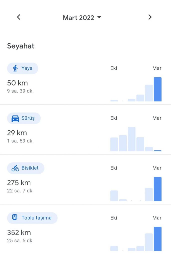 Google’a göre 275 km bisiklet kullanmışım ama bana kalırsa yanlış hesaplıyor