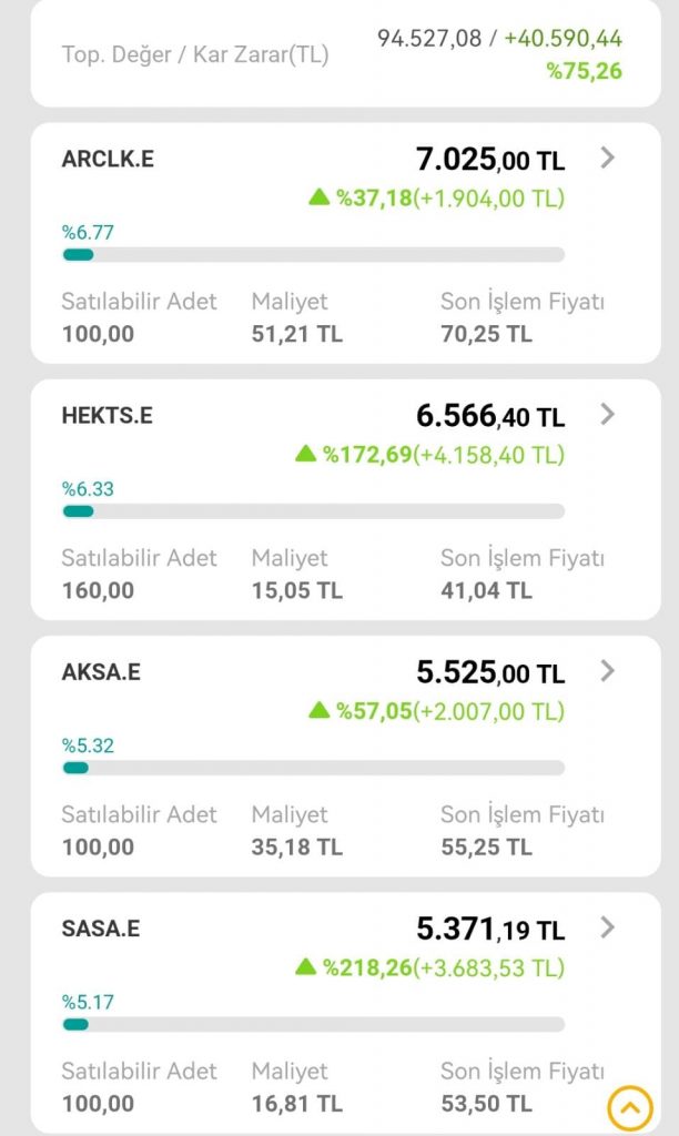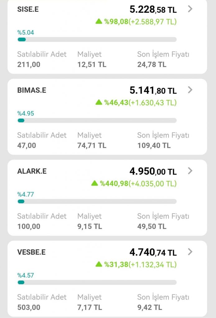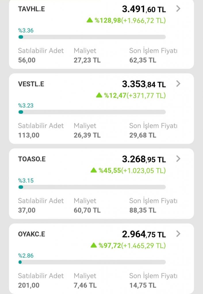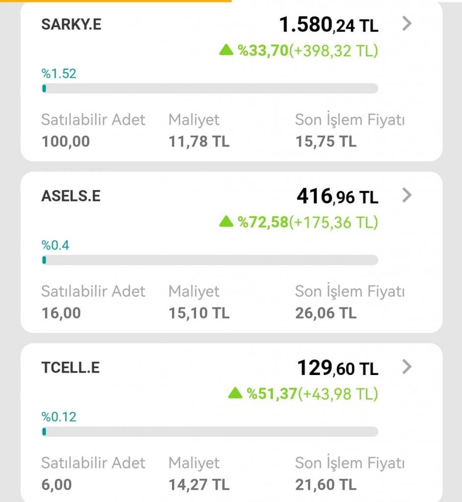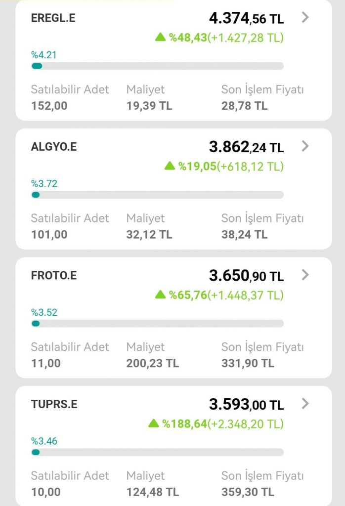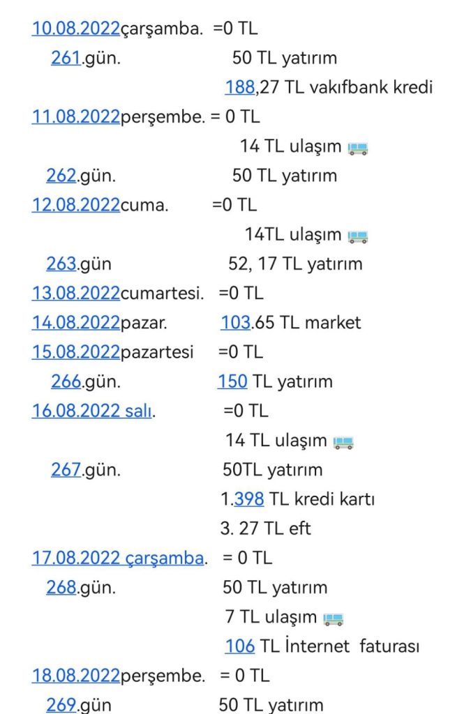 Hem trade eden hem de uzun vade temettü yatırımı yapan biri olarak kesinlikle doğru yolda ilerlediğini söyleyebilirim. Bu şekilde detaylı kendi yaşamını dizayn edip minik minik adımlarla hedefine ilerleyen kimsenin başarısız olacağını asla düşünmüyorum. Mücadelene hayran kaldım. Özellikle “emek değer” kısmındaki her kelimene imzanı atarım. Birçok kişi böyle bir farkındalıkta değil. Biri ferrari ile dolaşırken diğeri neden ekmek bulamıyor diye kimse sorgulamıyor. Yolculuğunda başarılar dilerim. Her geçen gün bir önceki günden daha iyi olacaktır.